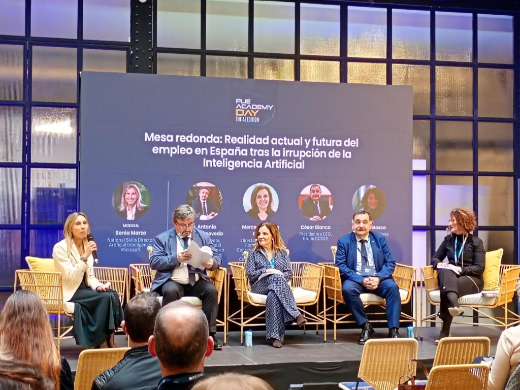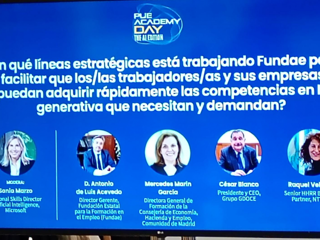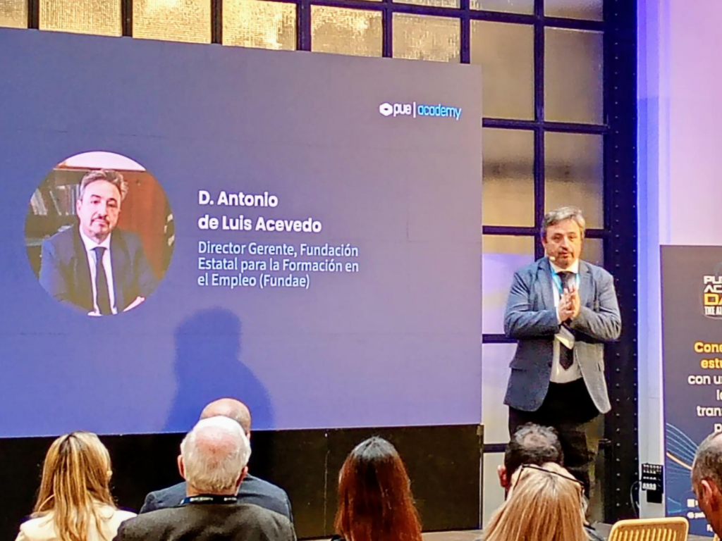 El pasado 18 de febrero DGF asistió al PUE Academy Day 2026 – The AI Edition, una jornada muy inspiradora centrada en cómo la inteligencia artificial está transformando la educación y el mercado laboral. El evento, celebrado en formato híbrido desde el Espacio Larra de Madrid, reunió a responsables de centros educativos, universidades y formación profesional con un objetivo común: integrar la IA y la certificación oficial en los itinerarios formativos para mejorar la empleabilidad del alumnado. A lo largo del día, pudimos disfrutar de ponencias de alto nivel, mesas redondas y casos de éxito reales que mostraron cómo grandes compañías tecnológicas y centros educativos están llevando la innovación directamente al aula, con la IA como eje transversal. Agradecer la participación de Antonio de Luis Acevedo, dir. Gerente de FUNDAE.